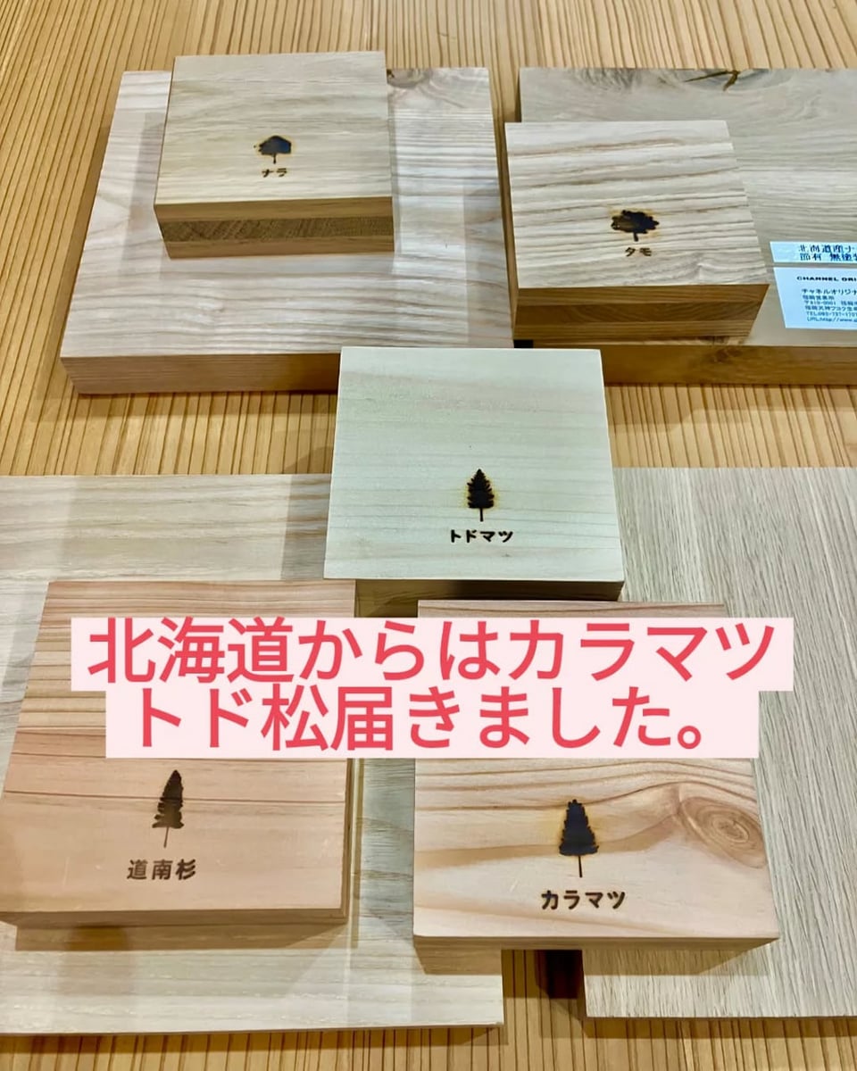 天然木は好きですか?Doopの提案する木の住まい作り。Doop糸島の杜の内装材として、耳納の里から大きな板が届きました。どんなお部屋に運ばれて行くのでしょうか。そして、北海道からは沢山のサンプルが届きました。