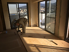 HK 様邸の工事も床貼りにかかりました。 床の下地には、針葉樹合板という国産の合...