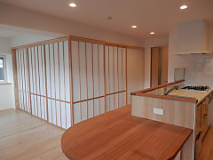 Y 様邸のリビングルームには、6帖の和室を設けました。 5枚の障子を開け放てば、...