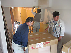 オープンルーム開催直前の西新ビルです。今回からキッチンの組み立てになります。 搬...