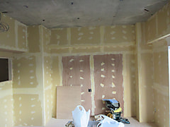 新年初のトーカンマンション警固です。 ボード貼りが完了したので、パテ作業に取り掛...