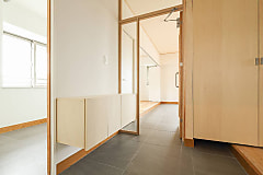 M 様邸の玄関の様子です。 玄関から廊下は土間にタイルで仕上げました。 隣の部屋...