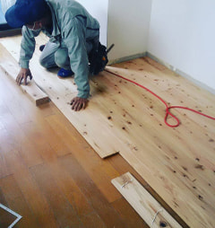 Doopの提案する木のリノベーション。 アカシアのフローリングと、センダンを使っ...