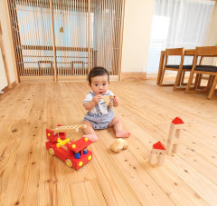 Doop の提案する木の家作り。 リビングルームに、無垢の木を使ってお子さま用の...