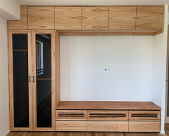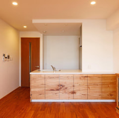 センダンの樹で家具を制作しました。 木目の存在感があります。 吊戸棚の下には、間...