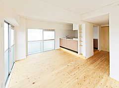 こちらはリノベーション完了物件でございます。 床には無塗装の耳納杉を使用いたしま...