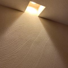 耳納杉と珪藻土を使って仕上げてみました。 玄関の腰壁と、堀込照明でデザインしてみ...