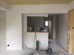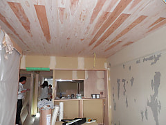 K様邸の工事状況です。 LDKには漆喰を塗ります!本日は漆喰を塗装前に下地を塗る...