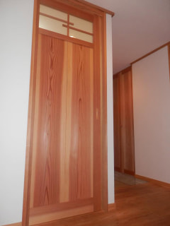 本日I様邸の工事の様子です。 扉も天然木を使用致しました。 シナをつかって扉を作...