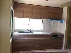 MY様邸にキッチンの取り付け工事が終わりました。 リビングとキッチンの間にあるヒ...